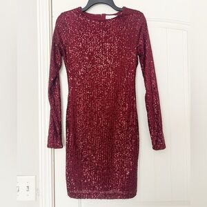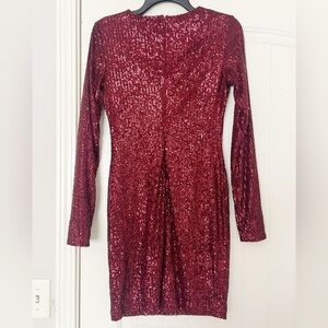 NWT Meshki Christina Long Sleeve Sequin Dress Burgandy