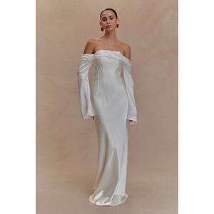 NWT Meshki L Giselle Off Shoulder Cowl Neck Maxi Dress White