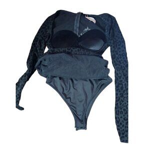 NWT Meshki black seara devore long sleeve corset top leopard mini dress size XS
