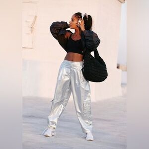 A new take on classic cargo, these pants add a pop of metallic shine wherever you go.