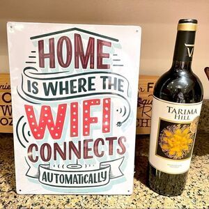 Metal Wall Sign “ Home is where the Wi-Fi connects automatically” 12” x 8.5”