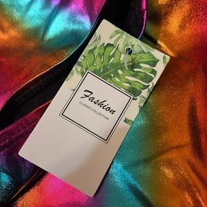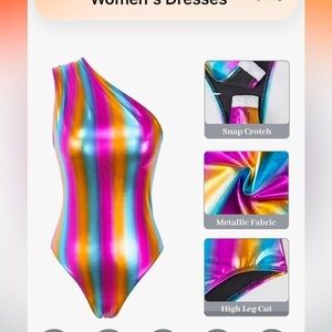 NWT Metallic Liquid Bodysuit High Leg Cut Ruched One Shoulder Leotard Top Rave
