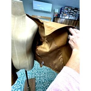 Elevate your style with this stunning Metaphor jacket in a beautiful tan color. Crafted from high-quality viscose, this jacket features an asymmetrical zip-up design that is both unique and stylish. The faux leather accents add a touch of luxury to this basic jacket, making it perfect for any occasion. This jacket is available in size 1X and is designed for women. Whether you're going out for a night on the town or just running errands, this jacket is sure to turn heads. Don't miss out on this NWT jacket that is perfect for any wardrobe.