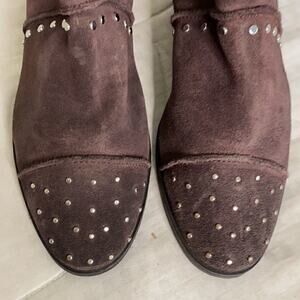 These are a beautiful pair of brown suede boots with metal embellishments from metaphor. This is size 7. Please see all pics and video.