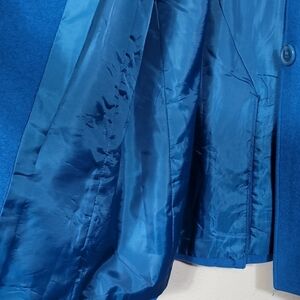 NWT MetroStyle wool trench coat ๐ in bold teal blue. Features button-up front, side pockets + long tailored silhouette. Perfect for chic winter styling, office wear, or classic vintage-inspired looks โจ.