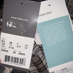 Brown plaid pieces stitched together with black contrast thread. A great skirt by Mexx. Creative and unique. The hem varies in length based on the different pieces. Listed as a EU size 38. Equivalent to a US size 8. New with tags.