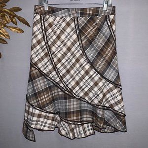 NWT - Mexx Brown Plaid Pieces Skirt - Size 8