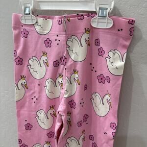 Meyadey leggings size 122/128 (7-8). The Swan Queen leggings are light pink featuring swans wearing crowns and pink floral. Super cute! New with tag (NWT).