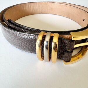 NWT Mezlan Genuine Lizard Leather Belt Gold Silver Buckle Made in Spain size 36