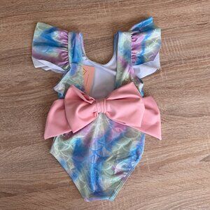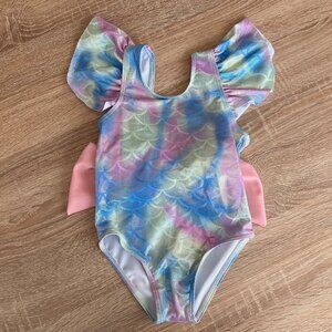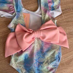 NWT Mia Belle one piece swimsuit mermaid pattern with bow size 2/3T