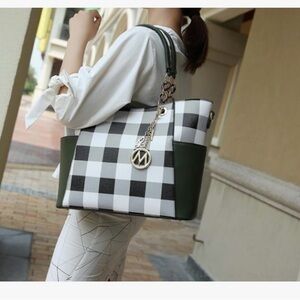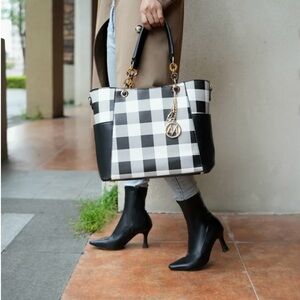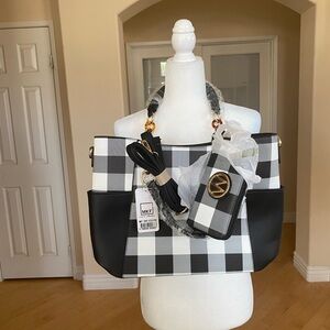 NWT Mia K Collection Black/White Checkered Tote with Wallet and Shoulder…