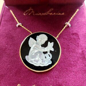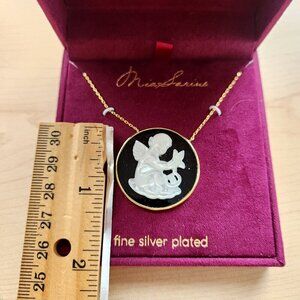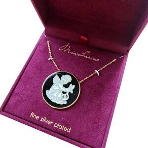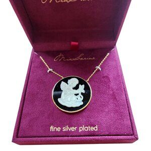 NWT Mia Sarine Cupid Mother of Pearl Sparkly Black Glass Cameo Necklace