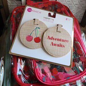NWT Miamica 3 pack packing cubes & 2 luggage tags Cherries