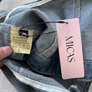 It comes in size L, with a regular fit and size type. The top is accentuated with buttons, straps, and zippers, making it a perfect addition to your wardrobe. It is suitable for travel, parties, and casual wear, and can be worn in summer, fall, and spring. Get your hands on this grunge-style denim crop top from Micas today!