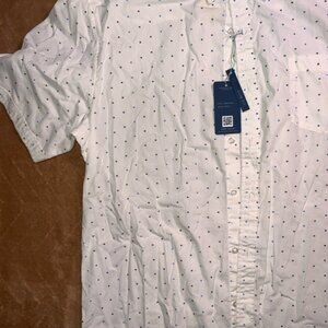 Elevate your wardrobe with this sleek and stylish NWT Michael Brandon men's shirt in size XL. The shirt boasts a crisp white base with a charming blue micro dot pattern that adds a touch of sophistication to any outfit. Crafted from premium materials for comfort and durability, this short-sleeve button-up shirt features a classic collar and a front pocket for functionality. Whether dressed up with slacks for a day at the office or paired with shorts for a casual weekend outing, this versatile shirt is a must-have for the fashion-conscious man. The brand new condition with tags ensures top-notch quality and authenticity. Add a pop of pattern to your ensemble with this exquisite garment that seamlessly blends comfort and style.