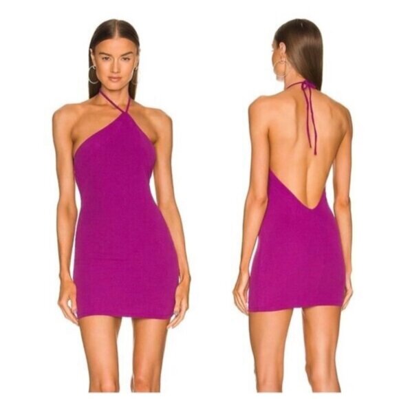 NWT Michael Costello X Revolve Purple Halter Neck Mini Dress Small (bin FF101)