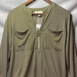 NWT Michael Kors 1/4 zip patterned long sleeve blouse size extra large