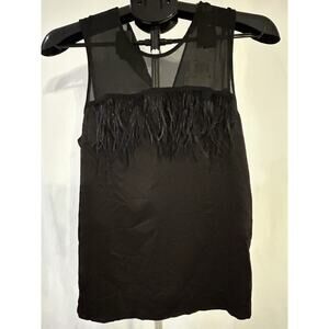 NWT Michael Kors Black Feathered Mesh Panel Tank Women's size M