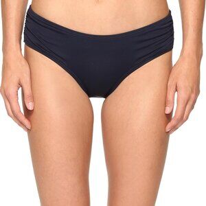 Soak up the sun on your next beach getaway with this fabulous swimsuit tankini set from Michael Kors. Halter style tankini top features self ties at back neck and removable soft cup padding. Silver-tone o-ring hardware at front. Solid black bottoms with shirring at sides, full bottom coverage and lined. Nylon/Spandex blend, feel free to message with any questions. Thank you for shopping with us and have a great day!