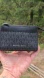 Elegant wallet with textured design. Features sleek black finish and logo detail.