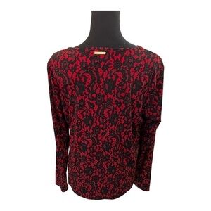 NWT Michael Kors Black and Red Long Sleeve Blouse Large