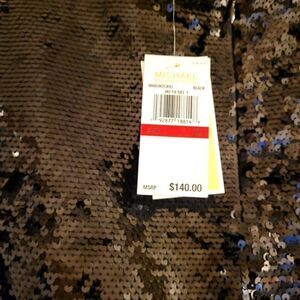 NWT Michael Kors Black Sequin Short Sleeve T-Shirt Style Top sz.XS MSRP $140