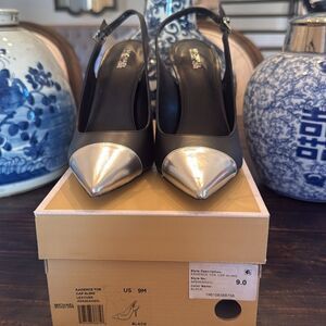 NWT Michael Kors Black and Silver Slingback Heels size 9
