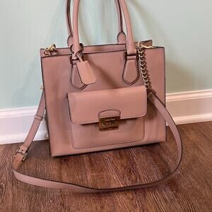 NEW with tag Michael Kors Bridget tote in a lovely blush pink color (the tag says "fawn"). No damage, never worn to my knowledge. Includes a strap for multiple war/carry options. Really pretty!