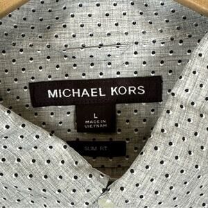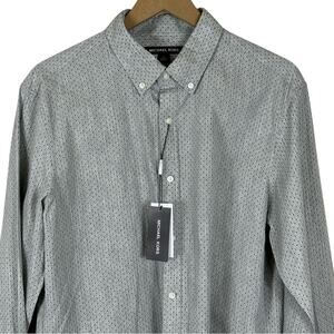 NWT Michael Kors Button Shirt Mens L Gray Dot Slim Fit 100% Cotton Work Preppy
