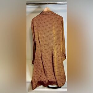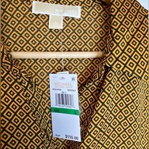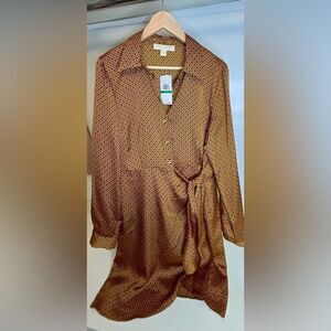 Look fierce and stunning wearing the MICHAEL Michael Kors Button-Down Tie Dress. Mini-length dress in a shirt silhouette. Button-down collar and long sleeves with buttoned cuffs. Tie detail on the waist. Allover print. Asymmetric hemline. 60% recycled polyester, 40% polyester. Machine wash, tumble dry. Imported.