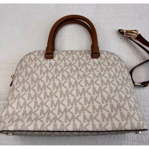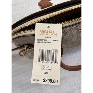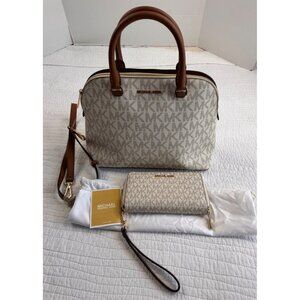 NWT Michael Kors Cindy Vanilla LG Dome Satchel & Wallet Set Signature Logo
