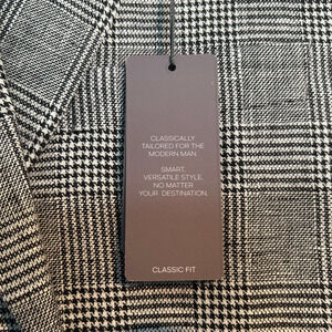NWT Michael Kors Classic Fit Linen Sport Coat, Black/White Plaid, Men’s 42R