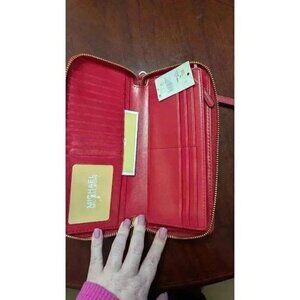 Color red, zip closure, removable handle drop 7”, interior zip pocket and 3 slip pockets, 10 card slots. 8.25” W X 4” H X 0.75” D Colors may vary due to lighting and screen resolution. If you have any questions please feel free to ask.