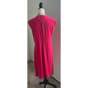 NWT Michael Kors Deep Pink Astor Studded Side Slit Short Sleeve MIDI Dress 1X