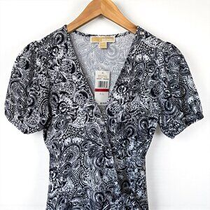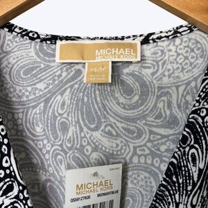 NWT Michael Kors Faux Wrap Midnight Blue Paisley Mini Dress Womens Size XS