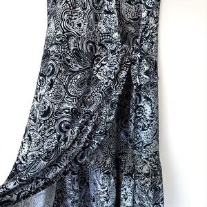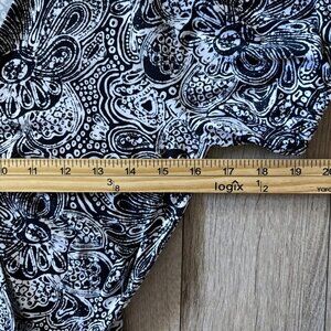 MICHAEL Michael Kors paisley faux wrap mini dress in midnight blue. The details make this dress extra special, like the tie at the waist, short puff sleeves, and ruffled hem. This dress is in excellent condition and still has tags.