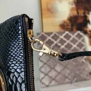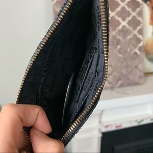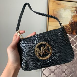 Michael Kors Fulton Black Embossed Leather Wristlet.