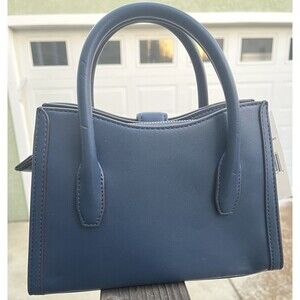 NWT Michael Kors Gabby Small Navy Faux Leather Top Zip Satchel Crossbody Purse
