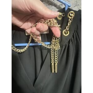 This is a brand new with tags Michael Kors black top, size XS. The top features a stylish gold chain detail around the neckline, adding a touch of elegance to your outfit.