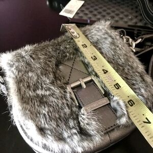 NWT! Michael Kors Grey Rabbit Fur with Silver Leather Crossbody Bag Retails $198