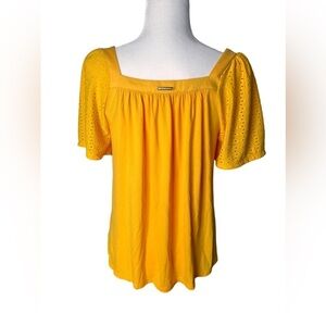 NWT Michael Kors Jasmine Yellow Blouse with Eyelet Sleeves - Size Small‎