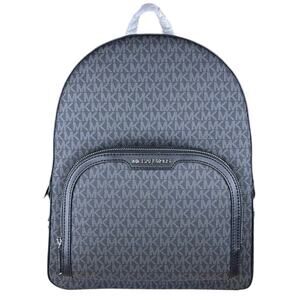 This Michael Kors Jaycee backpack is the perfect accessory for any stylish woman on-the-go. With a classic black exterior and silver hardware, this backpack features a signature MK logo pattern and strap accents. The zip closure and adjustable shoulder strap make it easy to carry, while the interior canvas and fabric lining provide ample space for all your essentials. MSRP 558