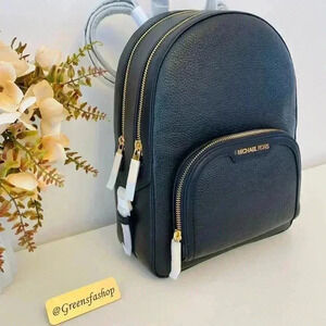 NWT Michael Kors Jaycee Medium Zip Pocket Backpack Black new