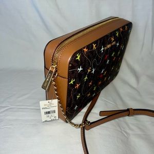NWT Michael Kors Jet Set Crossbody Bag Airplane Print Authentic Brown