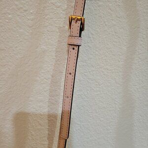 Check out this cute Michael Kors Jet Set Crossbody. A stunning Blush Pink color with gold trim. Has a strap that can be adjusted. Inside there is 1 slip pocket.