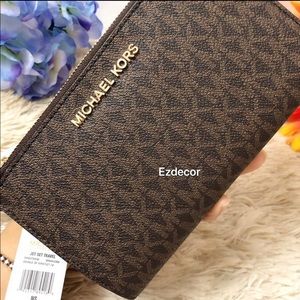 NWT Michael Kors Jet Set Double Zip Wristlet Brown
