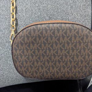 NWT Michael Kors Jet Set Glam Crossbody Oval Bag MK New Brown