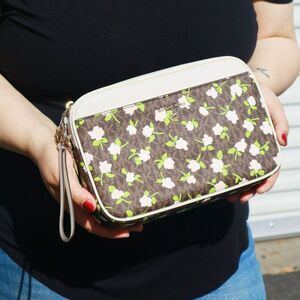 NWT Michael Kors Jet Set Large Floral Charm EW Camera Crossbody Bag Brown