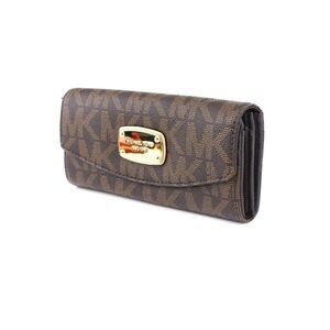 NWT Michael Kors Jet Set Logo Flap Wallet Signature PVC Brown