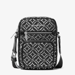 NWT Michael Kors Jet Set Medium Metallic Logo Jacquard Crossbody Bag